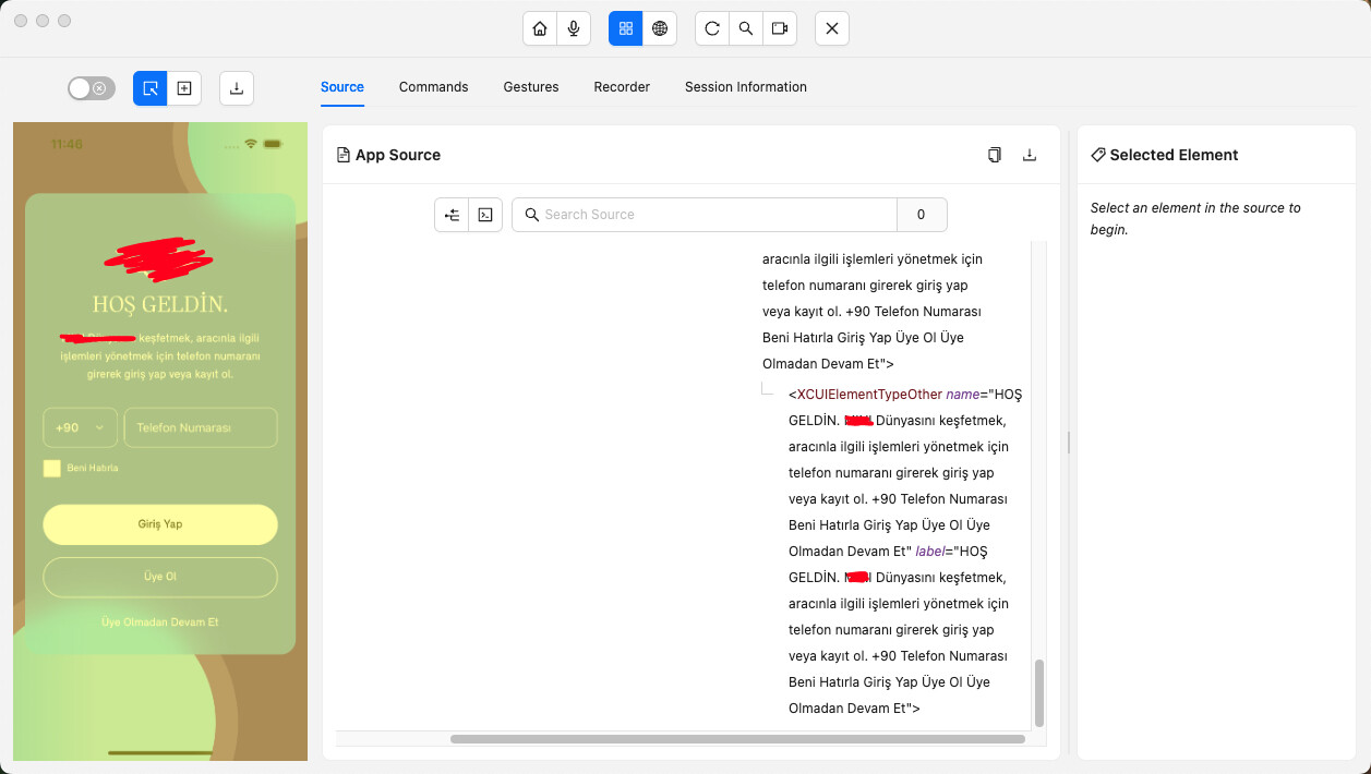 When I inspect my iOS app with Appium Inspector, the whole screen appears as a single XCUIElementTypeOther. I can’t see individual buttons or input fields, so tapping/locating elements separately is not possible.