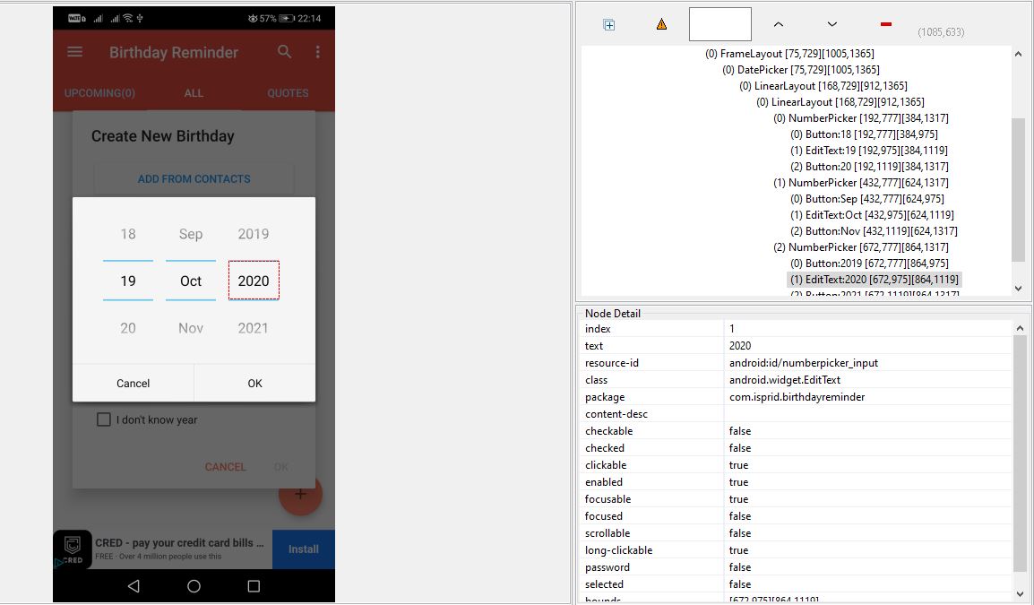 Hello I am trying to select the day, month and year. I tried with swipe but it did not work out. I also tried with sendKeys() but it too did not work out. The problem is all the 3 have same locator